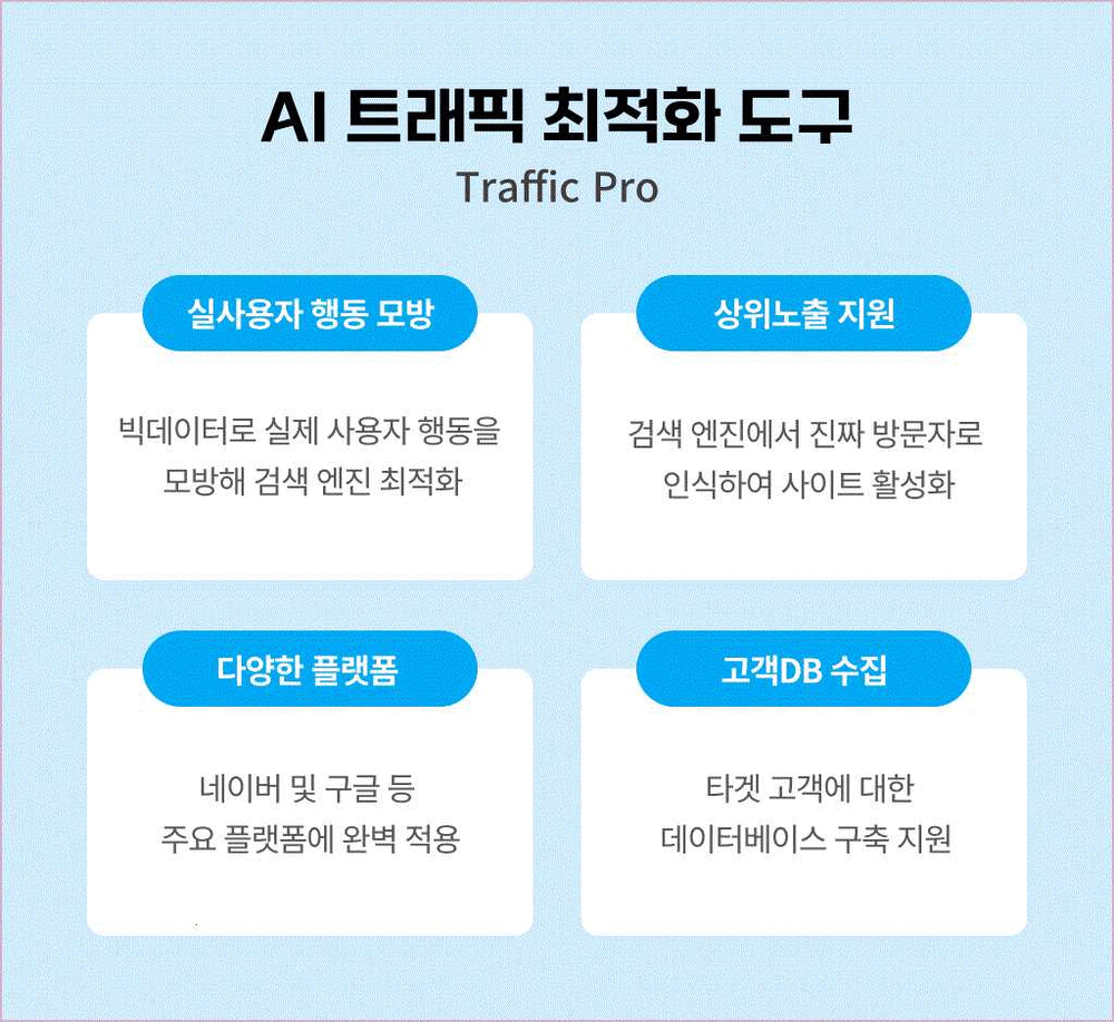 #TrafficPro #트래픽 #검색엔진최적화 #상위노출 #실제유저패턴 #블로그최적화 #스마트스토어 #AI트래픽 #마케팅솔루션 #유입증가